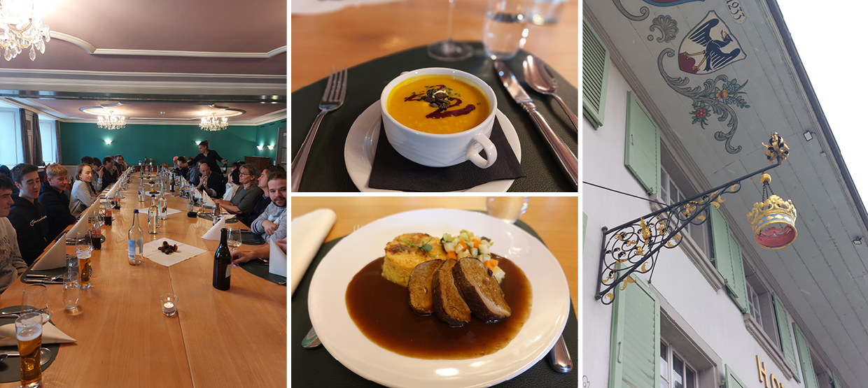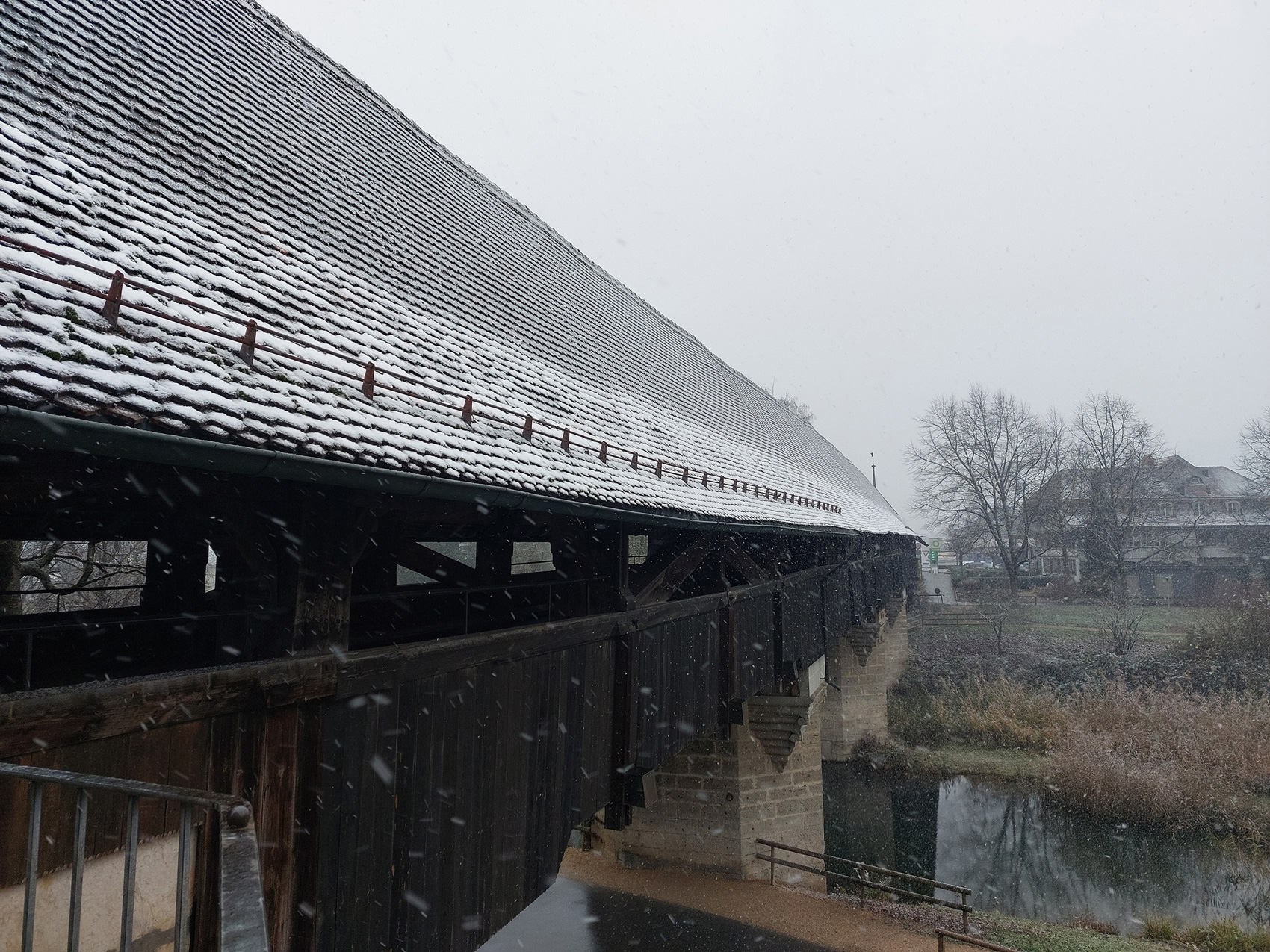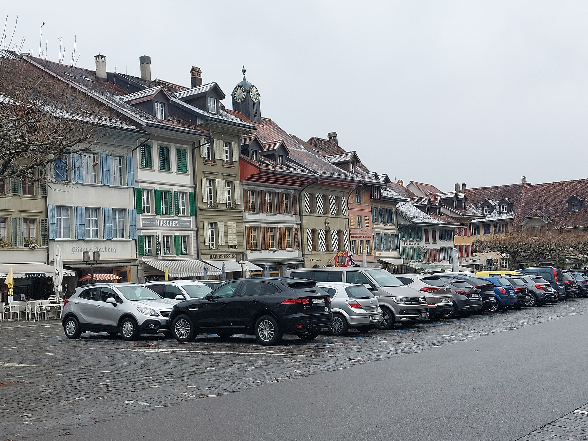 Um 11.20 Uhr wurden wir in Steffisburg vom Car abgeholt. Nach der rund 45-minütigen Fahrt genossen wir in Aarberg ein feines Mittagessen. Anschliessend wurden wir bei Wind und Schnee durch das kleine Städtchen geführt und erfuhren spannende geschichtliche Details, von denen einige bis heute sichtbar sind.