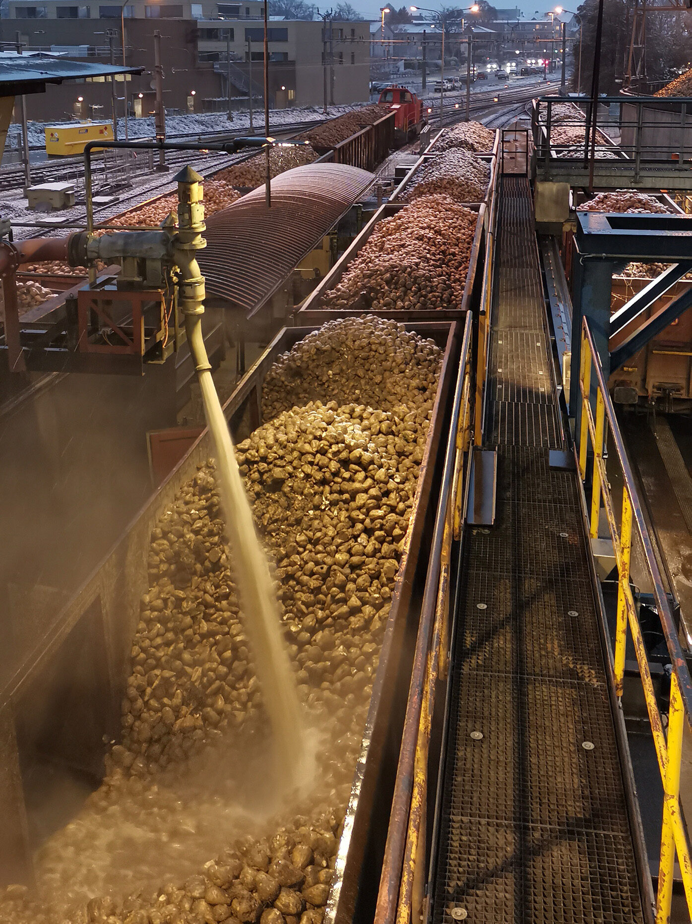 Während der Rübenverarbeitungsphase im Spätherbst werden täglich rund 1’500 Tonnen Kristallzucker produziert.