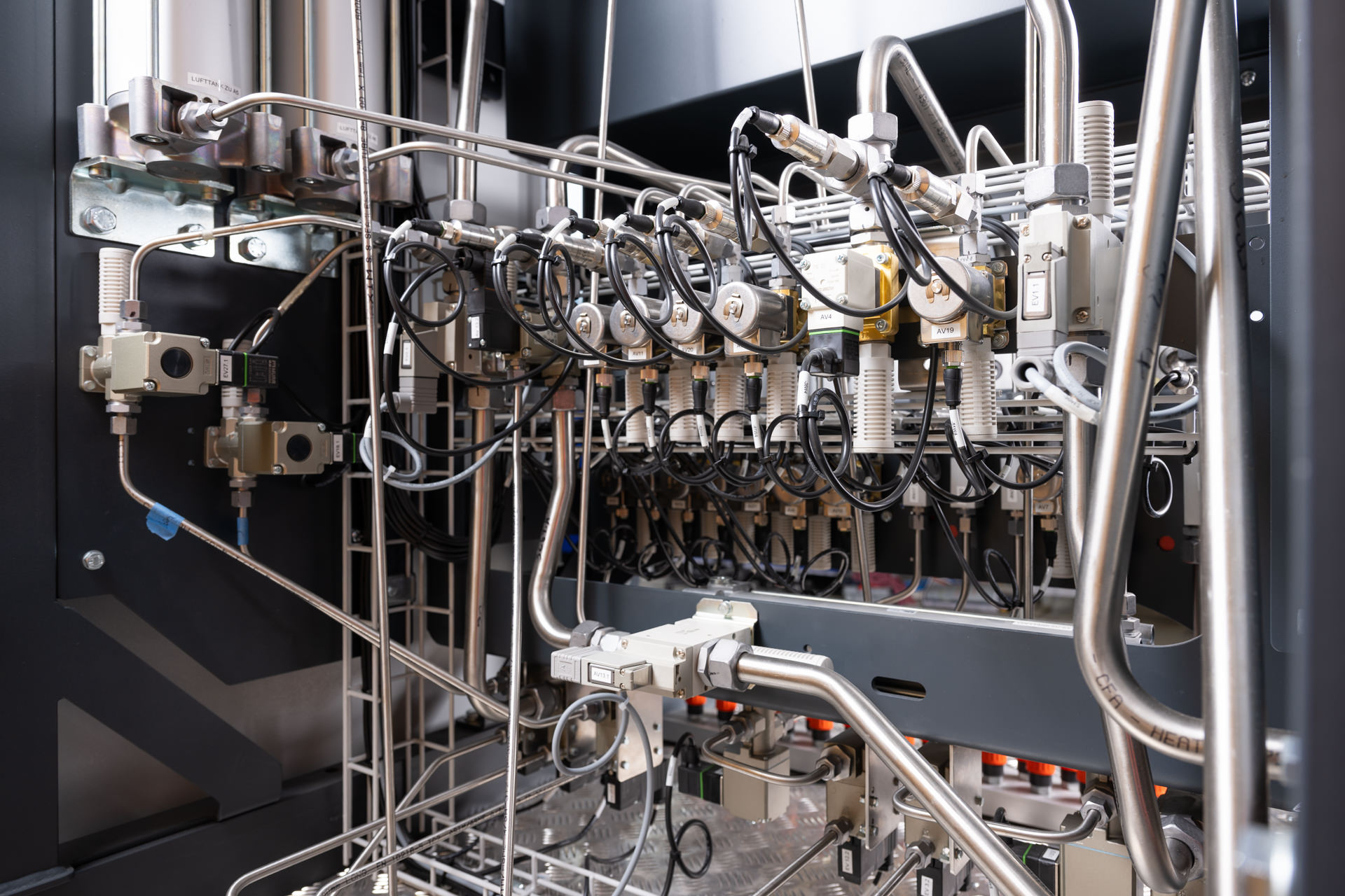 Unser Auftrag war die Fertigung der Steuerungen zum Ventil- und zum Pneumatiktafel-Prüfstand inklusive Hard- und Softwareengineering, Feldverkabelung der Sensoren und Ventile auf dem Prüfstand sowie die Inbetriebsetzung. Ausserdem werden die Prüfprotokolle nach den erfolgreichen Tests zum Qualitätsnachweis generiert und exportiert.
