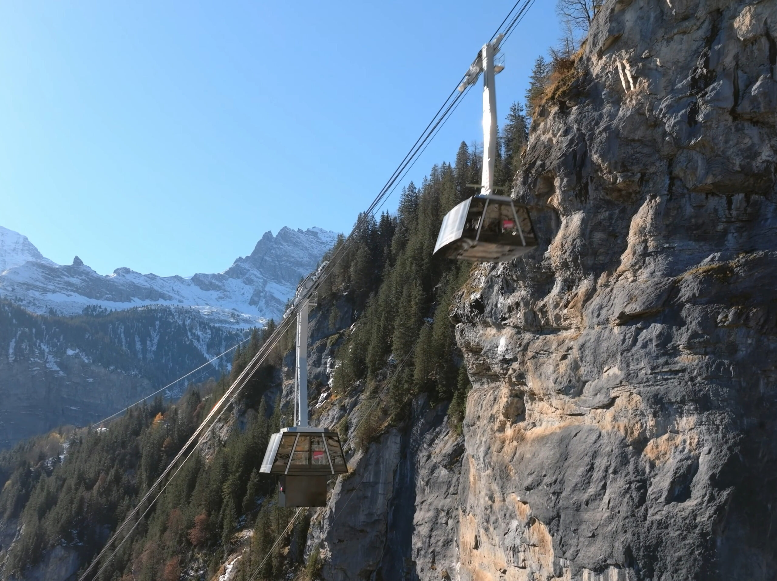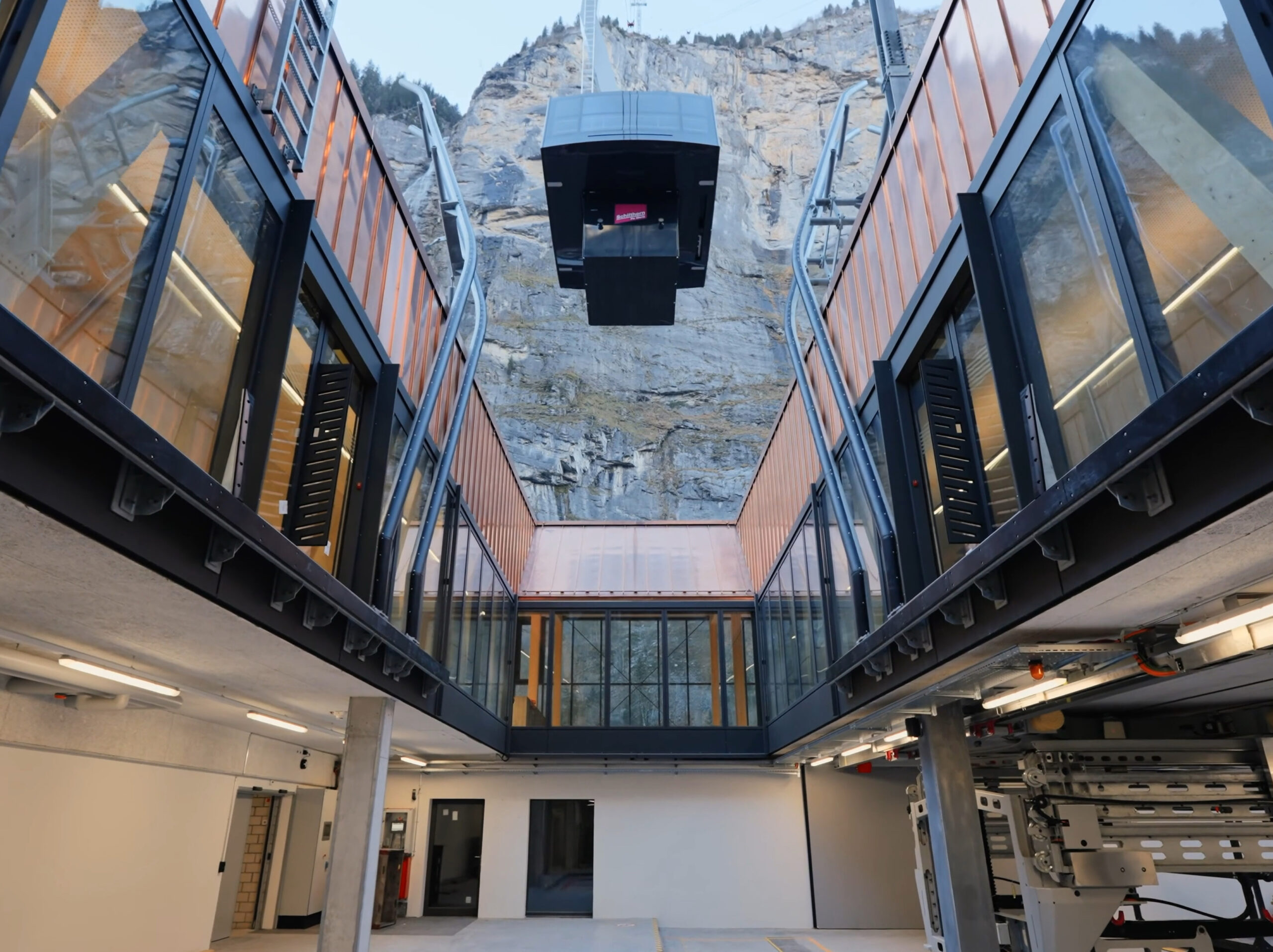 Die neue Pendelbahn zwischen Stechelberg und Mürren erreicht mit einer maximalen Steigung von fast 160 Prozent einen Weltrekord. Die Seilbahn wurde mit einer neuartigen, teilautomatisierten Güterlogistikanlage als Unterlast ausgerüstet. Somit werden Gepäck und Güter in einem unterhalb der Personenkabine befestigten Container mittransportiert.