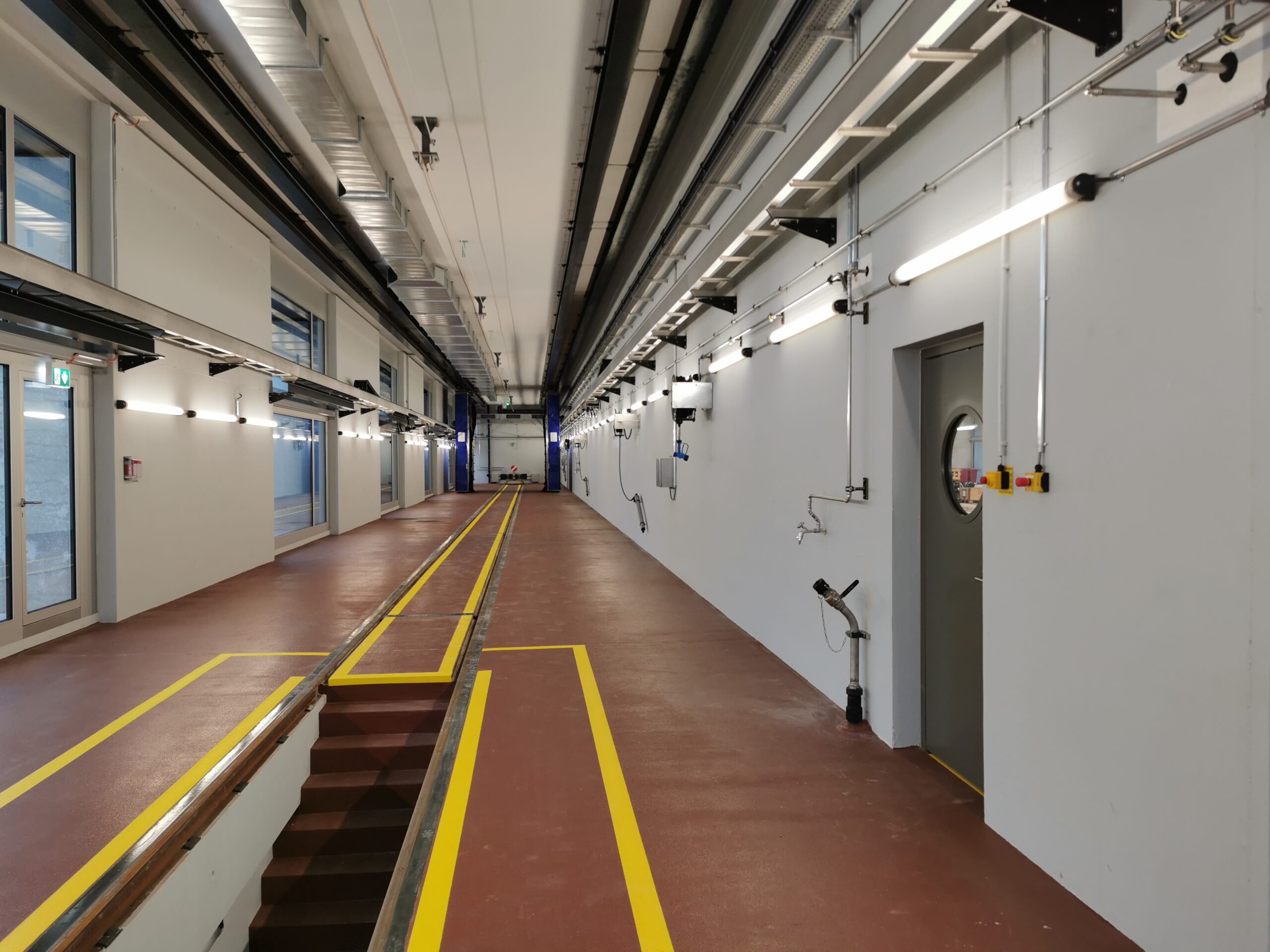 - Im Verkehrsgebäude regelmässig verteilte Not-Aus-Taster sowie ein mobiler Not-Aus-Taster gewährleisten die Not-Abschaltfunktion für alle Gleise gemeinsam.