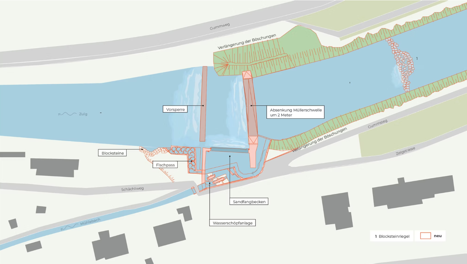 - Hochwassersicherheit durch Absenkung der Müllerschwelle um rund zwei Meter