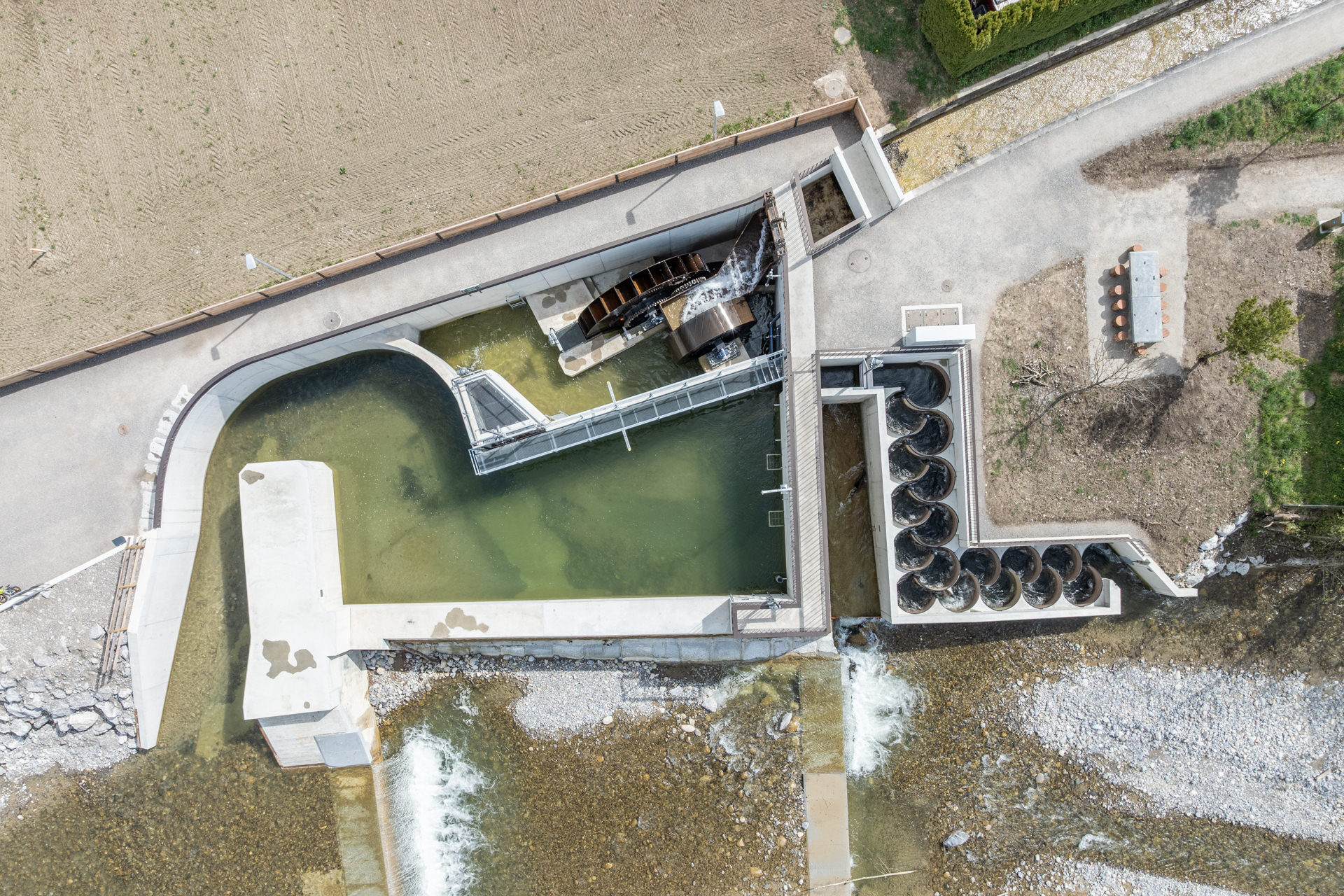 Im Zusammenhang mit dem Projekt Hochwasserschutz und Längsvernetzung Zulg musste die Müllerschwelle in Steffisburg abgesenkt werden. Dadurch konnte der Mühlebach nicht mehr mit dem Wasser von der Müllerschwelle gespeist werden. Die Beschickung des Mühlebachs mit Wasser hätte gemäss Projekt mit einer elektrischen Pumpe erfolgen sollen. Nun ist ein wasserbetriebenes Schöpfrad im Einsatz. In seiner Art ein absolutes Novum und eine Attraktivität.
