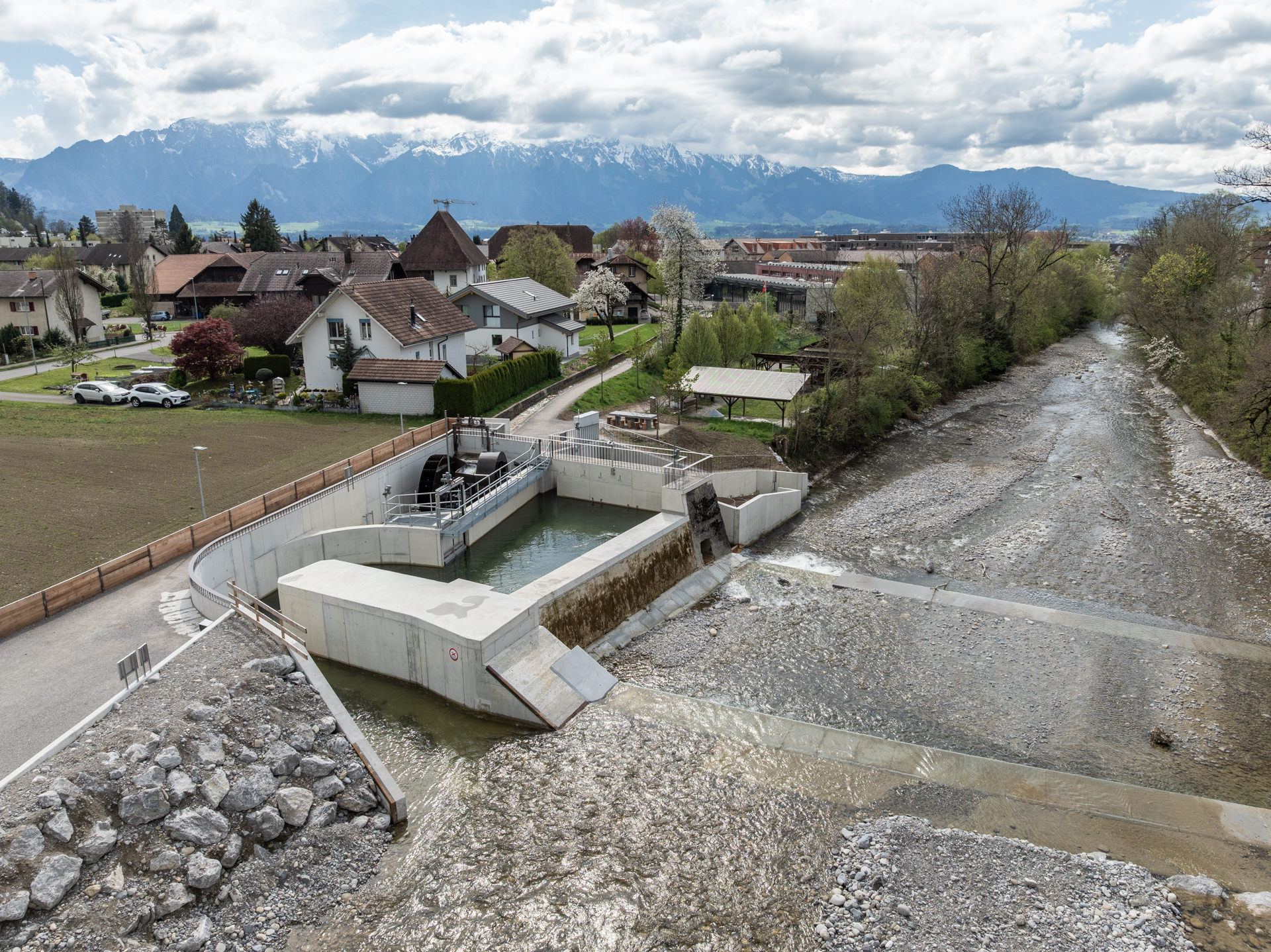 Die Zulg, bei kräftigem Regen ein wilder, stark geschiebe- und holzführender Gebirgsfluss, fliesst mitten durch Steffisburg und mündet bei Heimberg in die Aare. Verschiedene Hochwasserereignisse in den vergangenen Jahren haben eindrücklich das hohe Gefahrenpotenzial des Gewässers aufgezeigt. Bis 2026 soll mit verschiedenen Massnahmen der Hochwasserschutz verbessert und gleichzeitig die Längsvernetzung und damit die Biodiversität gefördert werden. Längsvernetzung meint insbesondere, die Flussaufwärtswanderung der Fische zu ermöglichen.