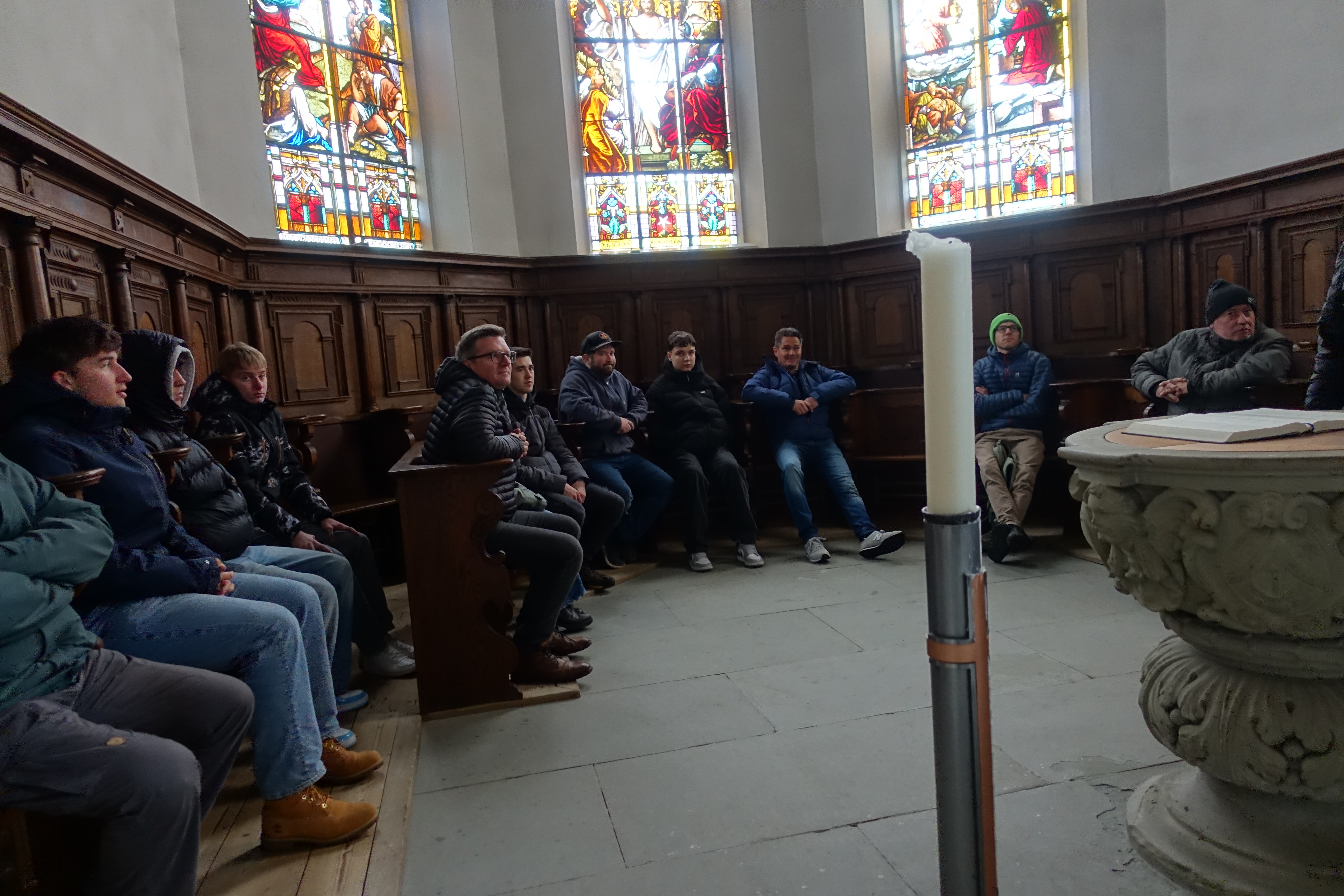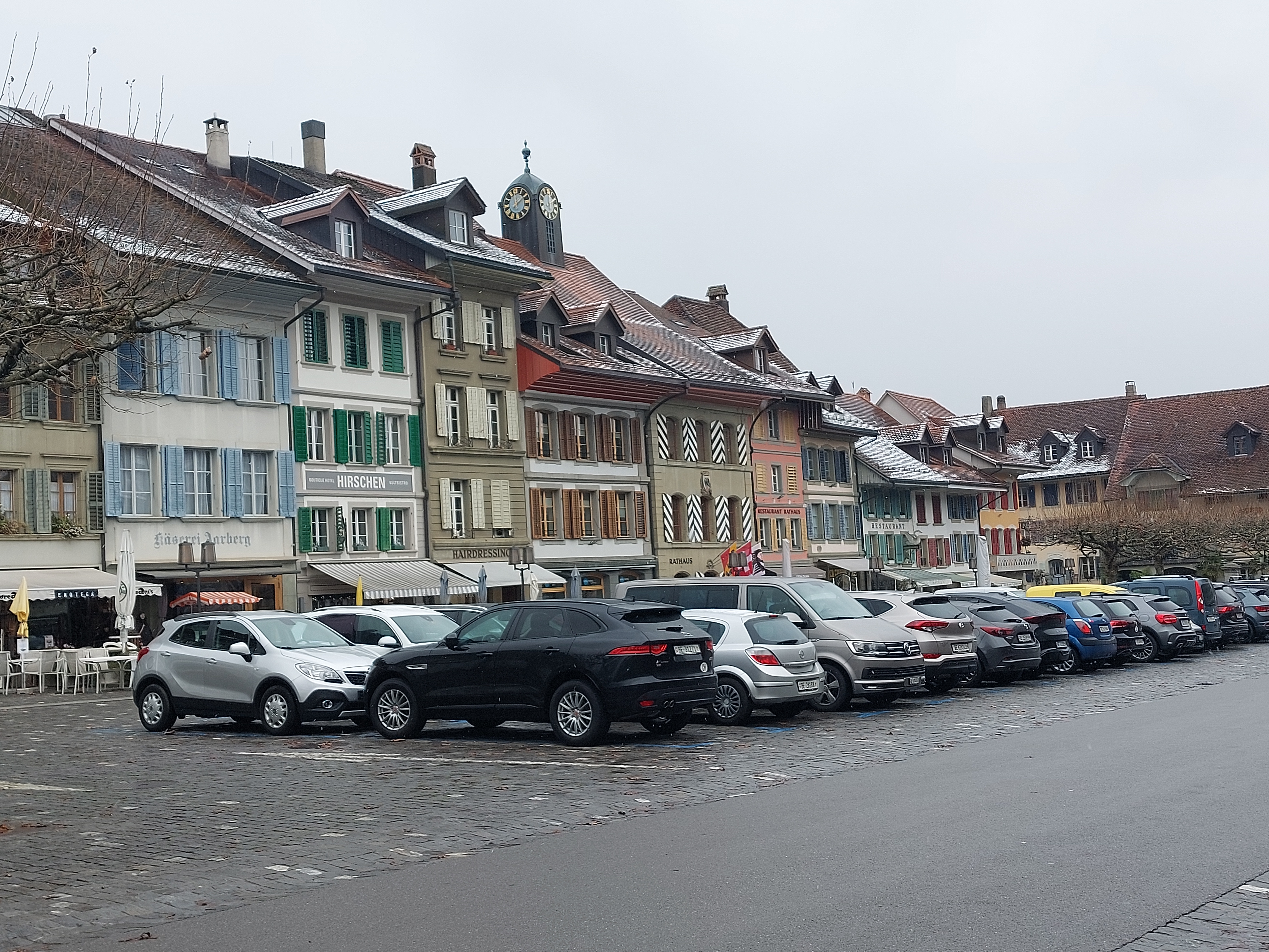 Um 11.20 Uhr wurden wir in Steffisburg vom Car abgeholt. Nach der rund 45-minütigen Fahrt genossen wir in Aarberg ein feines Mittagessen. Anschliessend wurden wir bei Wind und Schnee durch das kleine Städtchen geführt und erfuhren spannende geschichtliche Details, von denen einige bis heute sichtbar sind.