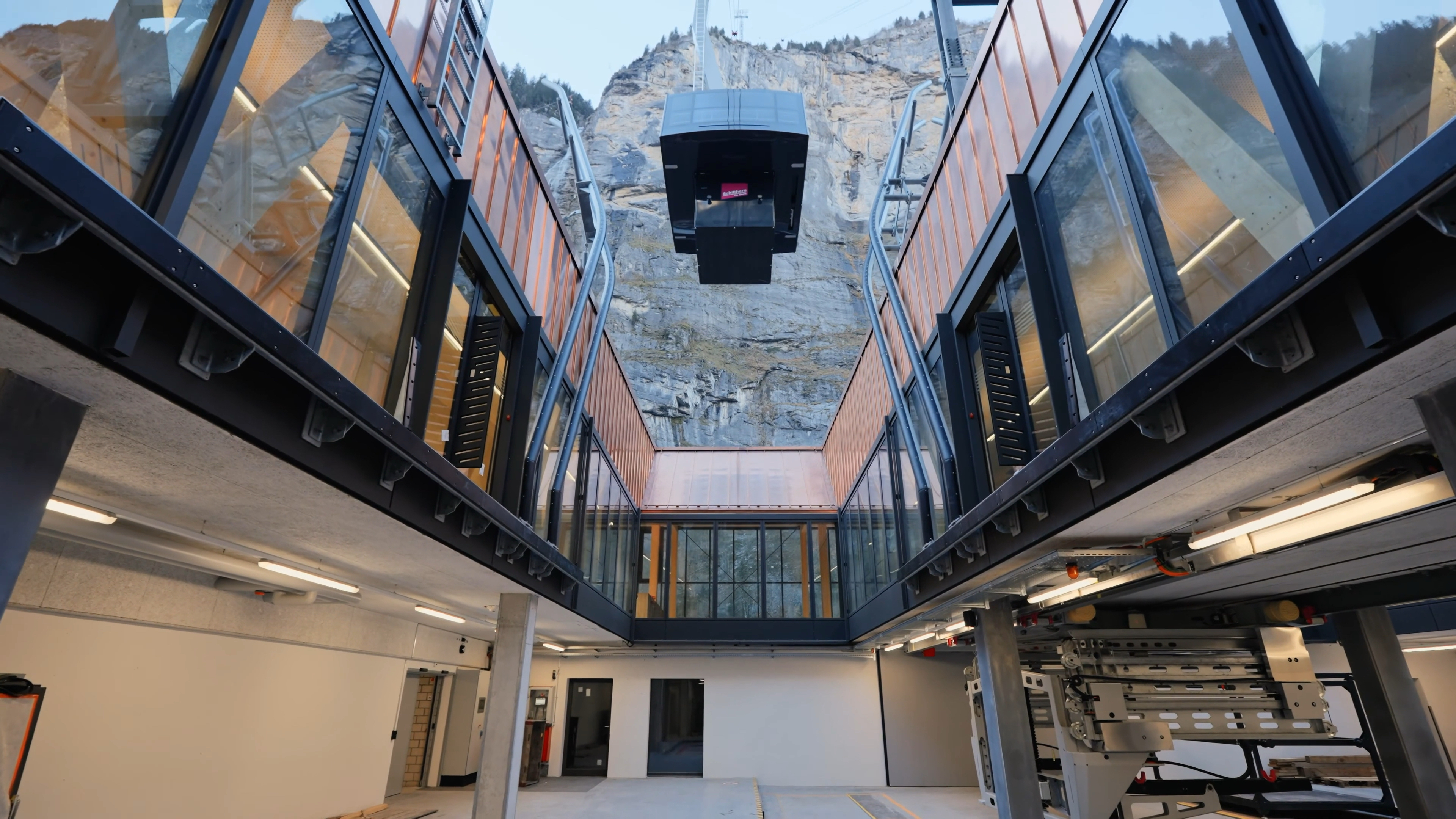 Die neue Pendelbahn zwischen Stechelberg und Mürren erreicht mit einer maximalen Steigung von fast 160 Prozent einen Weltrekord. Die Seilbahn wurde mit einer neuartigen, teilautomatisierten Güterlogistikanlage als Unterlast ausgerüstet.